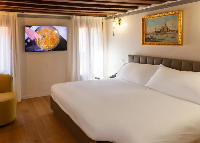 Die Apartments ist in unmittelbarer Nähe von den Palazzi Barbaro und die Kirche San Giorgio Maggiore liegt in einer Entfernung von nur 1 km. Das Zentrum von Venedig ist innerhalb von 20 Minuten zu Fuß erreichbar. Das Ca' Rino - Flats In Venice ist ebenfalls in 7 Gehminuten Entfernung von der Rialtobrücke gelegen.
